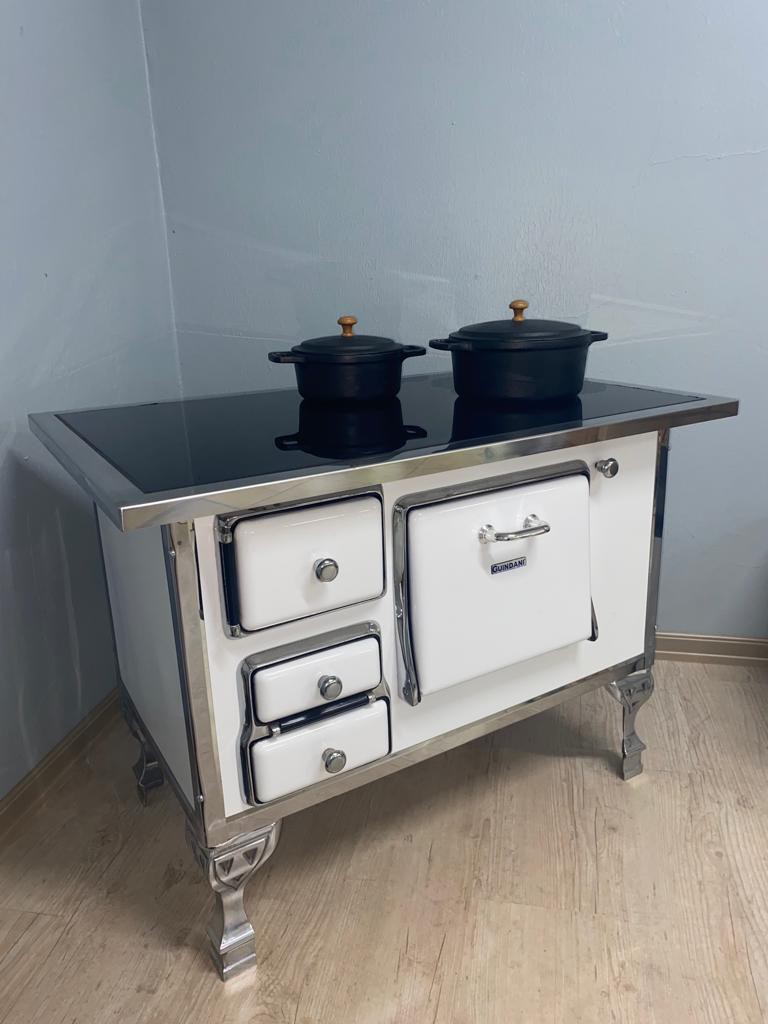 Com o Fogão a Lenha Nº 1 Vitrocerâmico sem Tampa Guindani®, sua casa ficará mais aquecida nos dias frios. Seu principal diferencial é a chapa vitrocerâmica que propaga o calor com maior rapidez e maior volume. Você não terá que ficar esfregando a chapa para não enferrujar: basta passar um pano umedecido com sabão e pronto, fogão limpo! É 100% segura contra choque térmico: derramar líquidos, gelo, ou colocar uma panela fria sobre a chapa quente não a danifica. Possui forno e duas opções de instalação da chaminé que você seleciona ao comprar: atrás do fogão no lado direito ou atrás no lado esquerdo. E você ainda conseguirá visualizar as labaredas da lenha queimando por causa da chapa em vidro. É inovação e praticidade para sua cozinha.